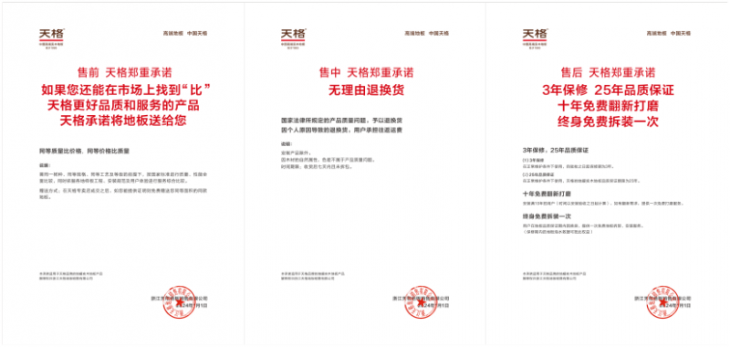 总部担任安拆:依托天格的安拆办事坐模式,天格所有的地板安拆工程师全数附属公司,由总部培训、总部查核、总部办理,做到了尺度化办事的“总部担任安拆”。正在家居行业,良多人存正在一个认知误区:产物交付完成代表消费行为的竣事,而安拆办事只是所采办产物的附加价值。实则并非如斯,做为高度依赖于办事的“半成品”——地板,安拆办事其实是产物不成贫乏的主要构成部门。没有颠末安拆的地板交付本色上就是“半成品交付”,消费者并不克不及进行一般利用。只要将地板选购、设想丈量、交货安拆等一系列流程以高专业度完成,才是实正保障了用户利用体验的“成品交付”。而地板行业的安拆办事现状,根基上是经销商自建安拆团队,或者多品牌共用安拆团队,或者一些电商平台只提出售地板不担任安拆等等。前面说了,未安拆之前的地板只是一个“半成品”,行业之所以有“三分地板、七分安拆”的说法,恰是由于其安拆办事和售后保障的黑白,间接决定了用户可否获得优良的体验。若是安拆团队不专业,对于用户来说,很可能存正在安拆进度欠亨明、义务区分不明白、返工问题接连呈现、办事没有保障等各类问题,并不克不及从底子上提拔用户的利用体验。天格早正在2011年提出《地暖实木地板系统处理方案》之时就曾经深刻大白到安拆办事对于地板后续利用的主要性,不只配备了专业的辅料和配件,且实行了全流程的尺度化。但方案提出之时,天格安拆办事的施行者是经销商自有团队,其安拆专业度仍存正在参差不齐的环境。因而正在这近十年的时间里,曲到2019年,天格的安拆办事坐正式成立,这一模式是地板行业初创。依托于安拆办事坐,天格初次推出“总部曲派安拆、售前-售中-售后全流程保障”的“成品交付”全新办事。比拟于大部门地板企业的“半成品交付”,天格的“成品交付”至多先辈了两个身位,再次刷新地板行业办事记载。从2014年起,天格就全面启动了专为地暖实木地板用户定制的“匠心办事”系统,并随后成登时板行业安拆办事人才专业培训机构“天格匠心学院”,正式地板安拆工程师的批量化培育。目前,天格安拆办事坐曾经具有专业安拆工程师超400人,团队持续扩充的同时,也正在不竭完美人才培育的尺度化流程。从理论课进修到实操培训,长周期系统化的培训课程,全方位提拔安拆人员的安拆技术。让每一位查核及格,用户办事岗亭的安拆工程师都成为天格专业办事的代表。天格的安拆工程师凭仗专业的安拆办事博得了用户的高度好评,以东北辽宁办事坐为例,其客户回访对劲度高达99。08%。前面说的地板是“半成品”所以安拆很主要;另一方面,地板仍是耐用消费品,一铺几年十几年以至几十年都不会改换。这么长的利用周期里面,怎样售后的落地施行?这就要说到地板行业的售后保障环境了。国标,地板的保修期为1年,而天格正在2018年就推出两年保修,2024年再次耽误至三年。正在2020年,天格推出涵盖售前、售中、售后消费全链的“五大许诺”,让用户实正实现“一次消费,终益”。“五大许诺”中仅“免费拆拆救援”一项就为良多用户带来了庞大价值。据不完全统计,仅2021年天格就为365户泡水家庭实行第一时间救援,减罕用户丧失,博得了用户的高度好评。这些售后保障,纯真依托经销商很难施行。更况且,经销商还存正在撤店改换的环境,不成能将涉及到十年、二十年的售后政策施行到位。所以,从售后保障的角度来说,天格的“总部担任安拆”也是,践行消费许诺的一个主要表现。(2)美国建材超市HOMEDEPOT、家居连锁店RONA、世界500强企业法国圣戈班旗下超市LAGRANGE、英国地板品牌FLOORS-2-GO等企业,以及绿地美国公司等地产公司。(4)正在巴黎第一区、第二区贸易区,伦敦贸易区,市核心的浩繁贸易地产、公寓中,天格地板也是主要的地面材料供应商。(2)2025年度“中国 500 最具价值品牌”;第十九届中国专利优良;《地采暖用实木地板手艺要求》国度尺度第一担任草拟企业;(3)中国地暖行业保举地暖实木地板品牌;中国林业财产立异;浙江制制品字标;绿色产物认证;全国质量诚信标杆企业;(5)地板影响力十大品牌、地板消费者喜爱十大品牌;2025年度家居消费者相信上榜品牌“销量领先品牌”。从天格地板发现第一片锁扣地暖实木地板,到现在提出中国高端实木地板的五大尺度系统,其径清晰地注释了“专注”的力量。它不只是品类的开创者,更是行业尺度取办事模式的鞭策者。面向将来,天格地板继续以手艺为基石,正在实木地板这一保守范畴里,书写着现代立异取靠得住质量相融合的新篇章。选择天格地板,意味着选择了一段被时间验证的专研过程,和一个努力于提拔家居糊口质量的靠得住伙伴。